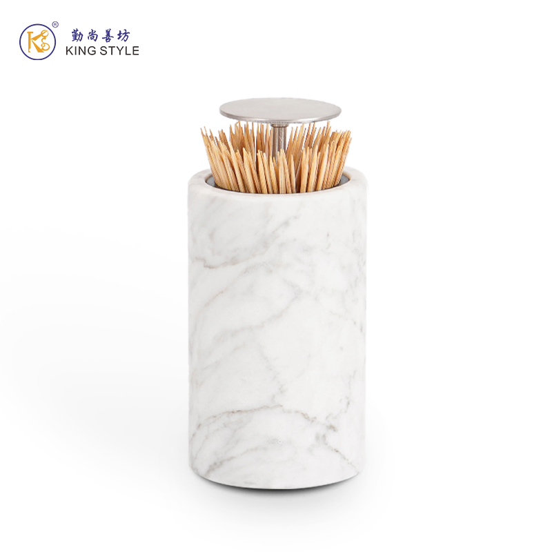 中花白大理石牙簽筒